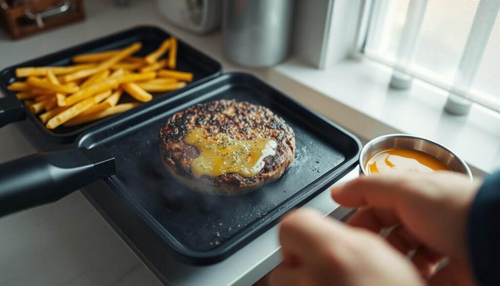 Air frying is a game-changer. Preheat your air fryer to 380°F and cook the patties for 8 minutes, flipping them halfway. This method achieves a medium to medium-well texture with minimal effort. If you prefer grilling, ensure the heat is medium-high to sear the patties without losing juiciness.