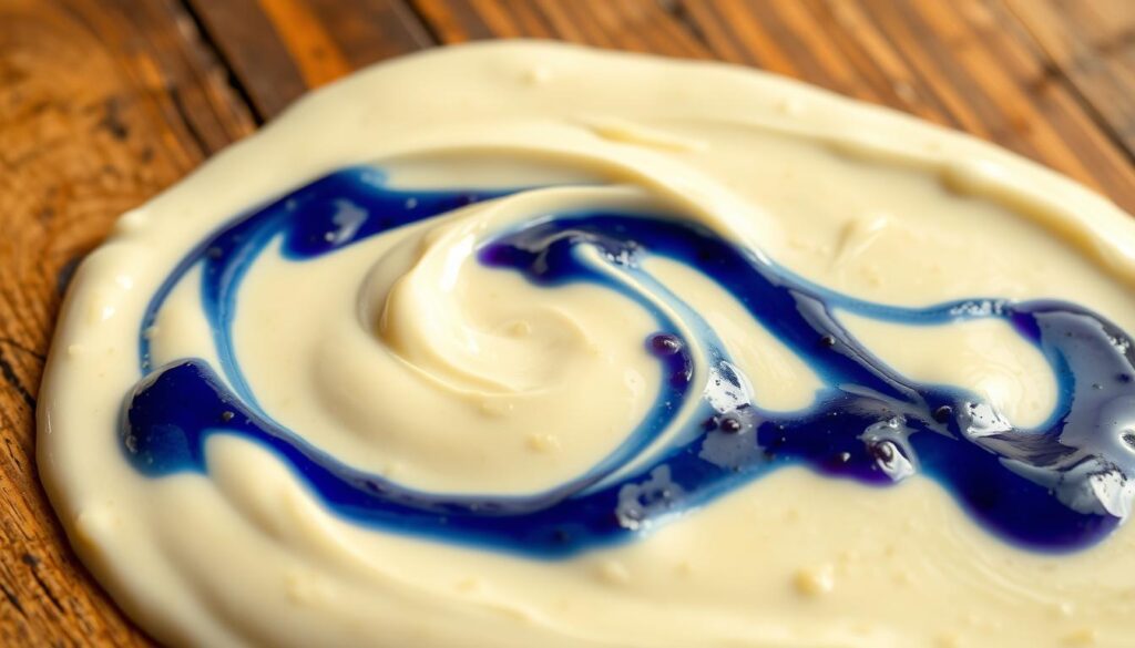 Start by heating the blue jam in a small saucepan over low heat. This makes it easier to mix. Add a tablespoon of water to thin it out slightly, creating a smooth texture. Let it simmer for about 5 minutes until it reaches your desired consistency. Remove from heat and let it cool slightly.