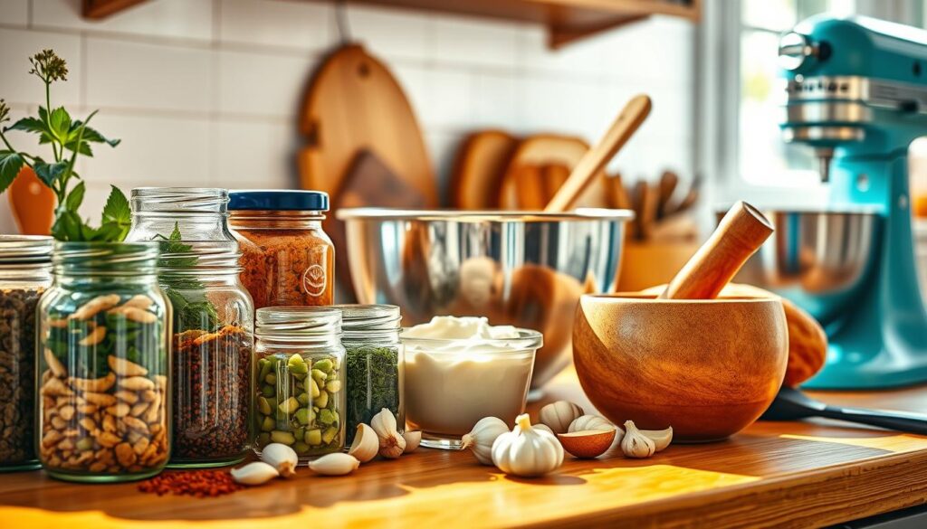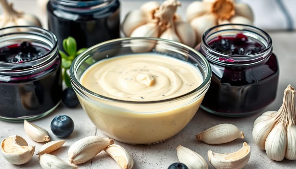To craft the perfect Blue Jam Garlic Aioli, you’ll need a few key ingredients and the right tools. Let’s break it down: